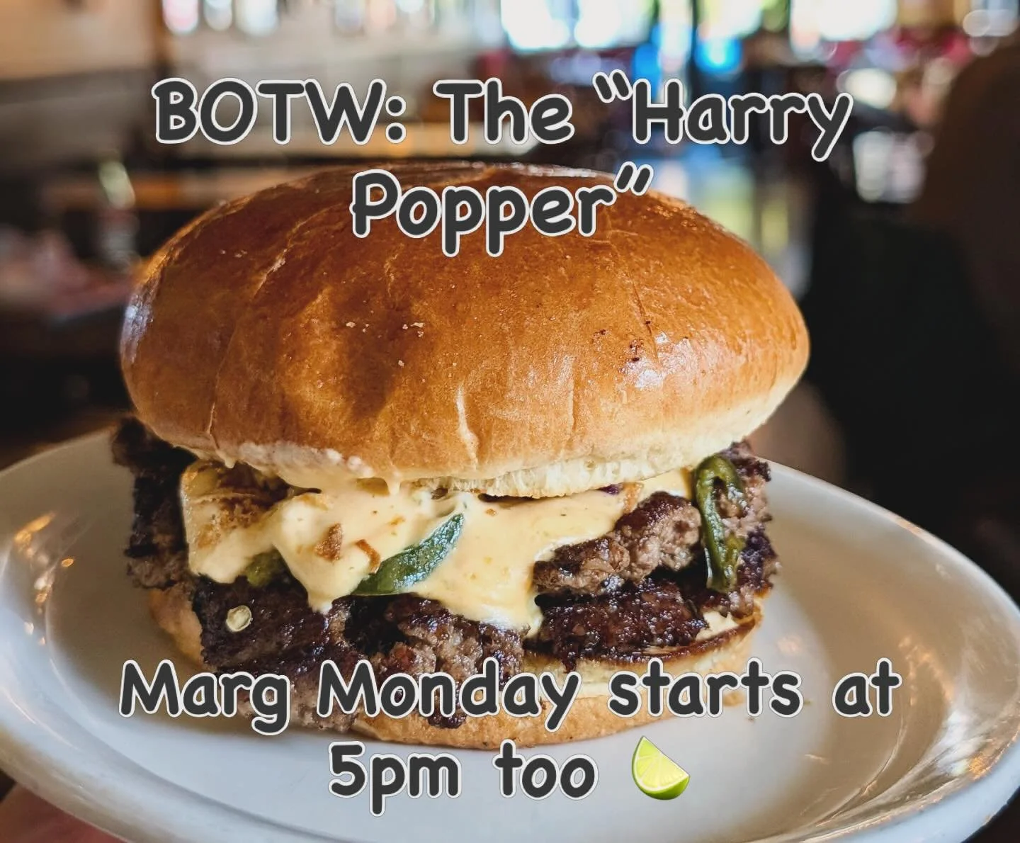 SpecialsCheck back here for our specials Burger of the Week 🍔 The “Harry Popper” Two ¼ lb Angus Beef patties smashed & griddled topped with raspberry-bacon jam, grilled jalapenos, crispy shallots & cider-jalapeno pub cheese on a brioche bun – 19 Available 04/20/26 - 04/26/26 Available 04/20/26 - 04/26/26 View fullsize View fullsize View fullsize View fullsize View fullsize View fullsize View fullsize View fullsize View fullsize View fullsize